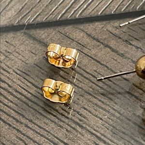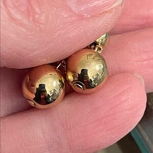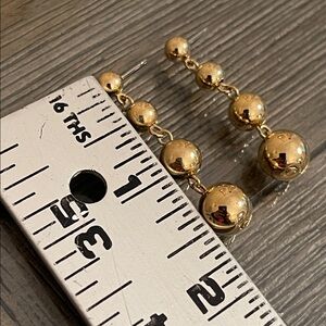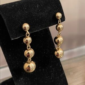 These are long dangling earrings featuring high-polished, graduated gold-tone metal balls.