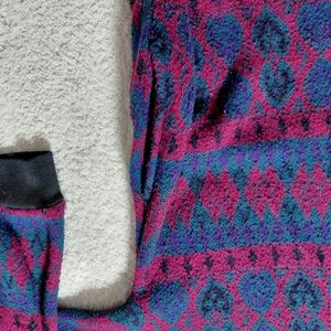 Women's Patterned Zip-Up Sweater - Pink and Blue trendy granola