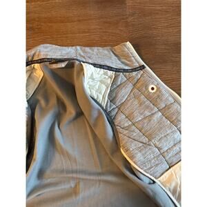 Features quilted insulated front panels with merino wool blend stretch back and side panels for breathability and mobility. Full zip front with high collar and chest zip pocket. Lightweight but warm — perfect for layering, hiking, golf, running errands, or transitional weather.