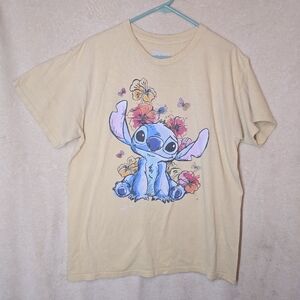 Girl's Disney Lilo & Stitch Graphic Print Yellow Short Sleeve T-Shirt Size L 100% Cotton Vintage
