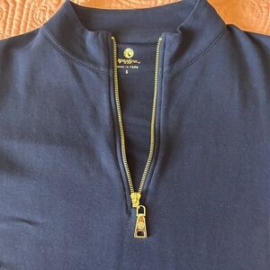 Stylish navy pullover with a half-zip design. Features a gold zipper for a touch of elegance.