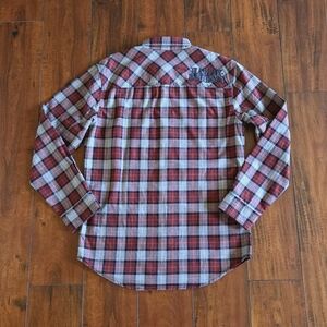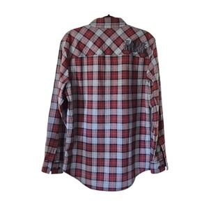 The plaid pattern, collared neckline, and button closure make it perfect for both travel and casual occasions.