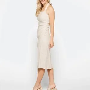 Sophisticated midi dress with a sleek silhouette. Ideal for versatile styling. Modern elegance for any event.