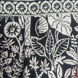Beautiful JOHNNY WAS WORSHOP linen black and white half sleeved oversized blouse size XS , hidden panel button front, covered buttons, no flaws perfect condition pre owned. Shoulder to hem 25", underarm to underarm 21.5"