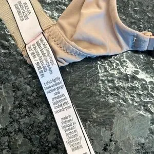 This product is a lot of two Victoria's Secret lightly lined T-shirt bras in size 34B, without underwire. The bras feature a solid pattern with bra strap straps, a hook and eye closure, and are made of blended fabric in nude and black colors. They are designed for comfort and support, perfect for everyday wear. The opaque bras also have accentuated straps and are recommended for hand wash only.