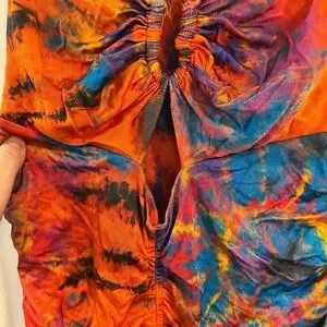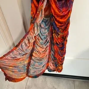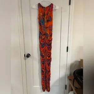 Show off your stunning shape in this stunning ruched tie-dye dress by Ronny Kobo.