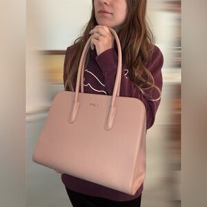 Furla tote bag. Made of genuine leather. Has light stains inside. In excellent condition. Comes with Furla card.