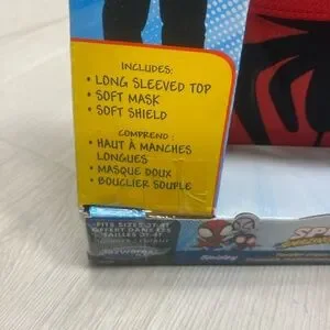Exciting Marvel Spidey costume for kids. Features vibrant red and black design. Perfect for superhero adventures.