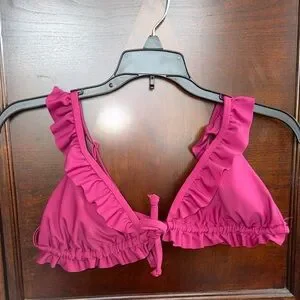 1. Old Navy Size XS Ruffle-Trimmed Triangle String Bikini Swim Top in Boysenberry- Very good used condition, no signs of wear, padding included