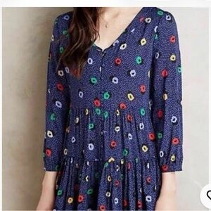 Anthropologie Maeve top size small oversized Lila Tiered Polka Dot Tunic Top.