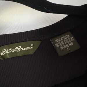 Eddie Bauer womens Size L Black Ribbed V Neck 3/4 Sleeve Top