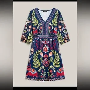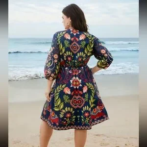 BloomChic - Colorful Boho Dress with Pockets Midi Dress- 14/16 -like new