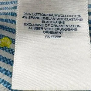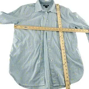 Lands End Womens M Button-Down Shirt Blue & White Striped With Yellow Dots