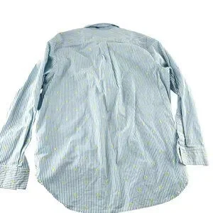 This Lands' End women's button-down shirt features a stylish blue and white striped pattern with playful yellow dots. Crafted from a comfortable cotton blend.
