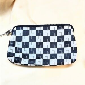 Chic L.A.M.B. pouch with a striking black and white zigzag design. Ideal for stylish outings.