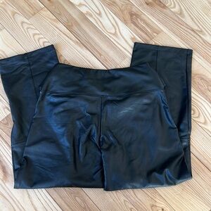 These faux leather pants are high waisteded, wide legged and cropped.