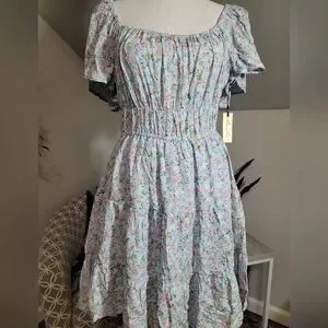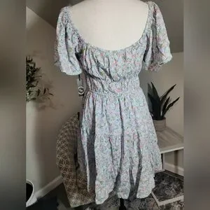 Liberty Love Babydoll style Eyelet Lace Floral tiered off shoulder Dress Medium
