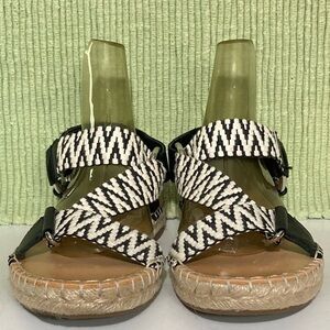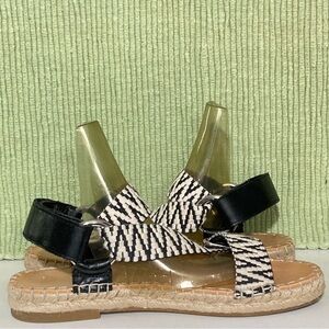Frye & Co. Womens Kole Asymmetrical Black/White Strap Espadrille Sandals SZ 6.5M