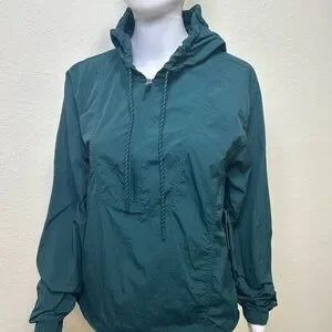 Stylish hiking jacket with a half-zip front. Features adjustable drawstrings and elastic cuffs. Ideal for casual wear.