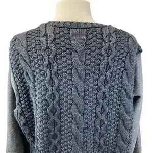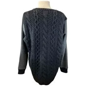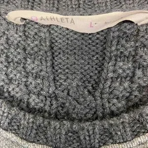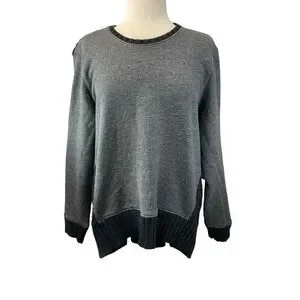 Athleta Womens Size L Gray Crew Neck Sweater Long Sleeve High Low Hem Cable Knit