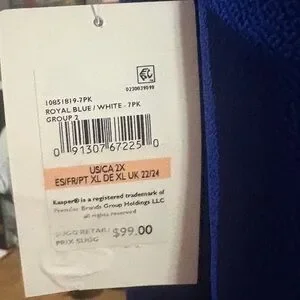 New with tags blue and white Kasper Colorblock Faux Wrap Dress Women’s Plus Size 2X. Flattering colorblock design features a deep navy blue body with crisp white long sleeves and a classic wrap-style silhouette that defines the waist beautifully. Perfect for office, business meetings, church, events, or polished everyday wear.