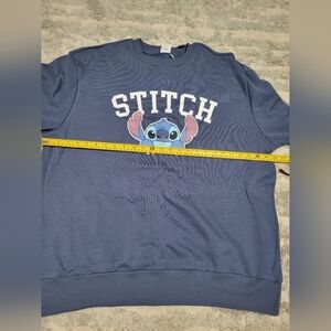 Stay cozy and stylish with this Stitch graphic sweater. Perfect for fans, this blue sweater adds a playful touch to your wardrobe.