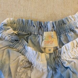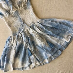 Surf Gypsy Blue White Tie Dye Skull Print Smocked Mini Dress Medium