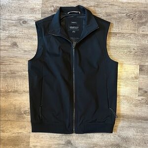 Stylish black vest with zip closure. Perfect for layering. Includes convenient pockets. Stylish and sophisticated. Dress up with slacks or down with jeans! Very versatile and super nice!