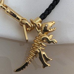 Coach BRAIDED CHARM FRIENDSHIP BRACELET Leather Rexy Dinosaur Gold Black 67043