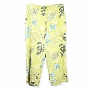 90s Y2K Women Tommy Bahama Silk Pants L Hawaiian Floral Tropical Crop Stretch