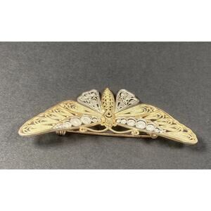 Estate Find Vintage VanLou Sterling Silver Gold Plated Filigree Butterfly Pin Brooch. This has some light tarnish on some of the silver and I tiny spot on the rim of the right wing that looks like a gap in the gold plating from when it was made otherwise this is a very gorgeous piece. The pin back works perfectly. It measures roughly 2.75” x 1.5”. Please message me prior to purchase with any questions. Thank you!