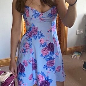 NWT Zara Floral Mini Dress in Pink and Blue Sz S