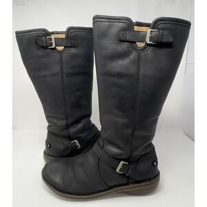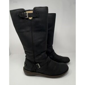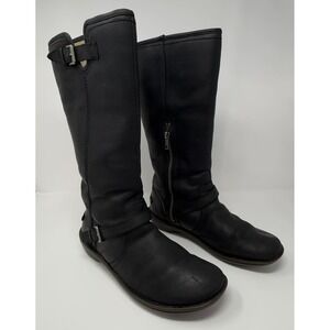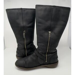 UGG 1003335 Tupelo Womens 10 Black Leather Tall Sheepskin Lined Riding Boots Zip