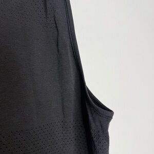 Lululemon Breeze Back muscle tank in classic black. Lightweight, breathable performance fabric with perforated mesh panels for extra airflow—perfect for workouts, gym sessions, or layering over sports bras. Relaxed muscle-tank fit with wide armholes for easy movement.