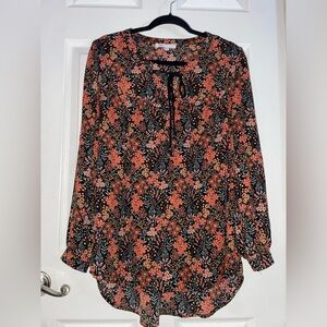 DR2 Elegant Floral Women's Blouse - Black and Orange Medium