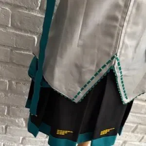 Embrace the Vocaloid style with this vibrant teal and gray wearable costume. Perfect for fans and cosplay enthusiasts.