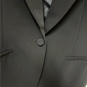 Sophisticated black blazer with sleek design. Ideal for professional settings.