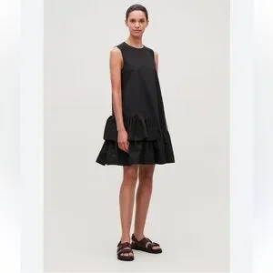 COS A Line Sleeveless Dress Black Ruffles Size S