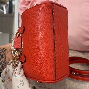 Burnt orange mini rowing comes with detachable strap, charm, scarf, and credit card wallet holder all new without tags