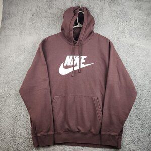 Nike Sportsclub Fleece Sweatshirt Mens 2XL Maroon Spell Out Center Swoosh Hoodie
