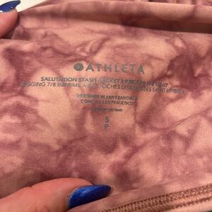 Athleta Salutation Stash Pocket 7/8 Printed Tight Leggings S tie dye pink mauve