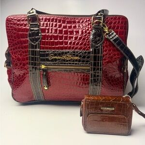 Samantha Brown 16" Red Faux Crocodile Embossed Computer Business Travel Bag