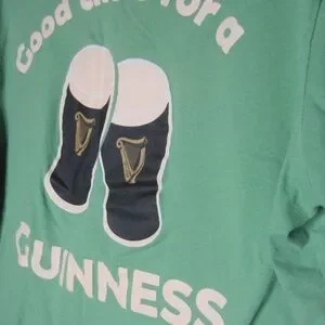 Get yours in time for St. Patrick's Day! This Guinness T-shirt is perfect for those who enjoy a good time with a pint of beer. The shirt features the iconic Guinness brand logo in green, making it a stylish and comfortable choice for anyone looking to show off their love for beer.