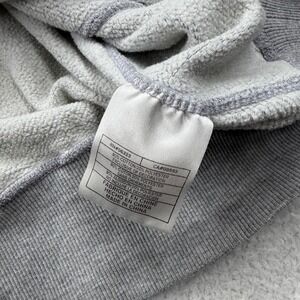 Nike Team MLB New York Yankees hoodie in a classic heather gray. This athletic sweatshirt features a prominent navy blue embroidered Yankees script across the chest and a small Nike swoosh at the neckline. Designed with a traditional kangaroo pocket, ribbed cuffs, and a ribbed hem, it offers a comfortable fit for any fan. The interior is lined with a soft fleece for added warmth during cooler game days or casual wear. Please note a small snag/hole on the sleeve and back as pictured.