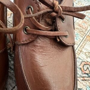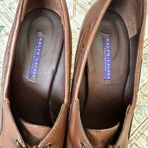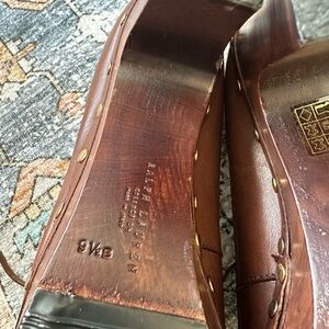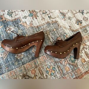 Y2K RALPH LAUREN Purple Label Collection Shoes Brown Leather Wood Heels Lace UP Studded Size 9.5.