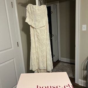 House of CB set. Size medium. No alterations. Worn once for shower. IT IS SOLD OUT ONLINE NOT RESTOCKING THE TOP. Send me a message if interested!!! It’s listed 375 because fees on here.