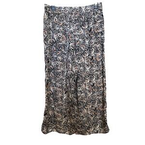 Anthropologie Wide Leg Lounge Pants Swirl Print Tassel Drawstring Black Coral M