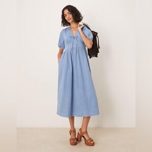 Nobody's Child Astra denim twill midi dress in light blue size 8