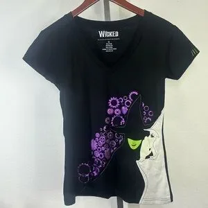 Show off your love for music with this WICKED Broadway Musical T-Shirt. This black V-neck shirt is perfect for women who want a slim fit design that flatters your figure and makes you look stylish.