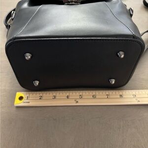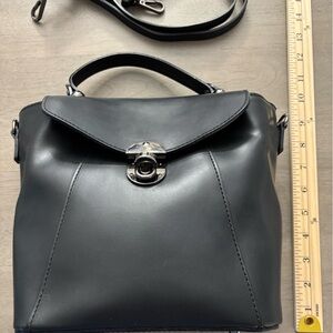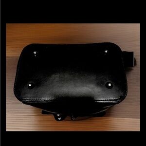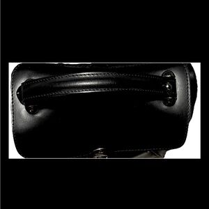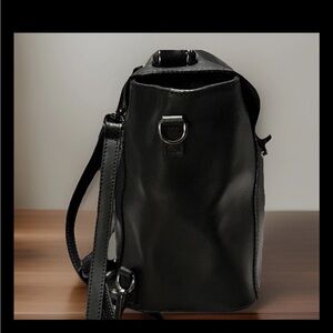 The Luana Ferracuti Italian Leather is a Combination Black Handbag and Backpack. It is a stylish and versatile handbag designed for any occasion. Made of high-quality leather with a solid black exterior and gunmetal hardware, this medium-sized handbag features a turn lock closure and a top handle for easy carrying. The interior includes a zippered compartment in addition to two slip pouches. The adjustable detachable strap allows for added convenience, making it a perfect accessory for any woman on the go. Crafted in Italy with attention to detail, this Luana Ferracuti handbag combines practicality with a touch of luxury, making it a timeless favorite for everyday use. Excellent condition inside and out. From a smoke free environment.